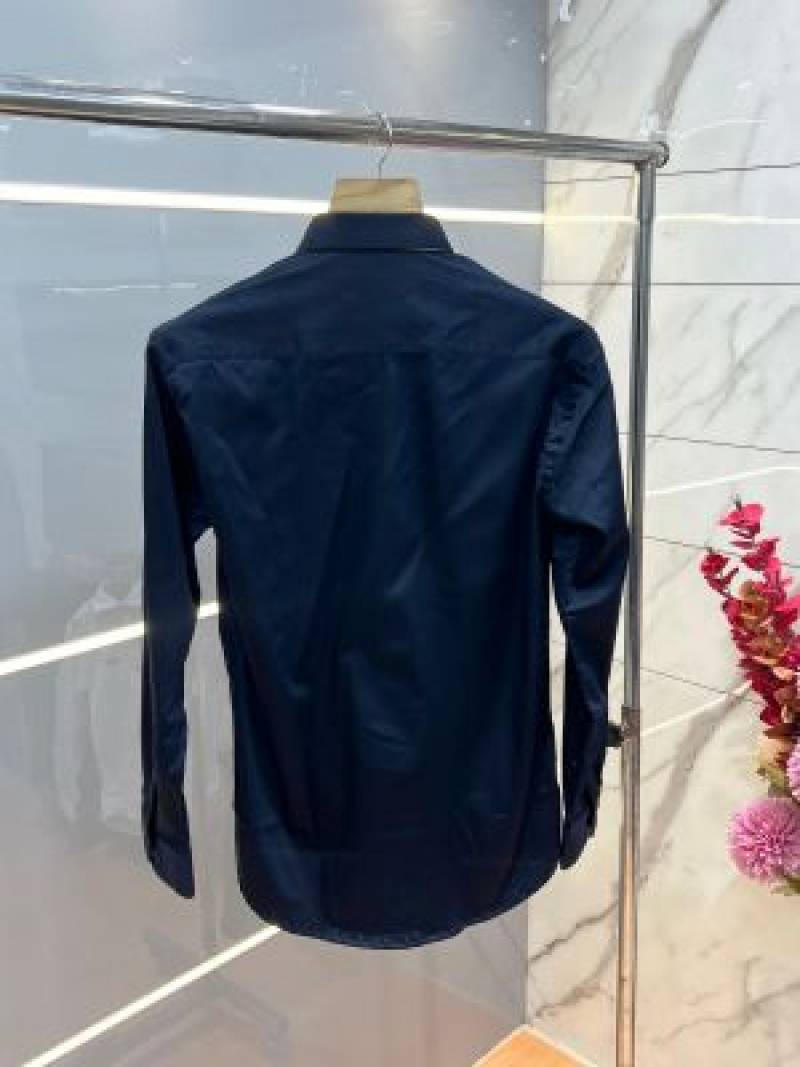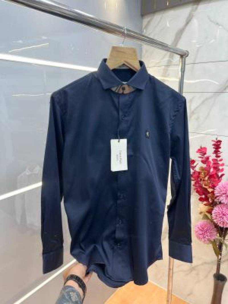Burberr y Navy Premium Embroidered Logo Shirt With custom Branded Button Tagging And Brand Packing 3748