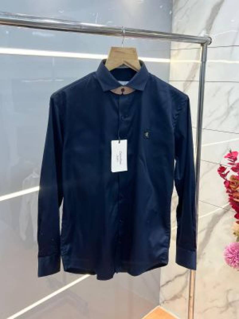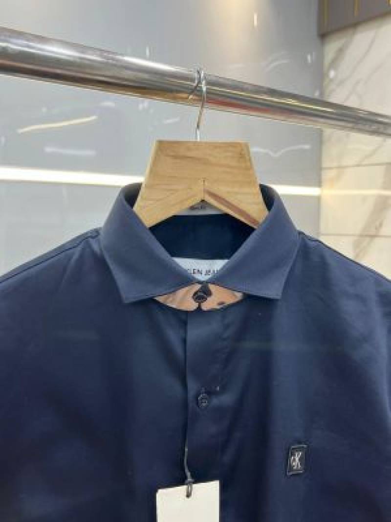 Calvin Klei n Navy Premium Imported Patch Logo Shirt with custom Branded Button Tagging And Brand Box 3729