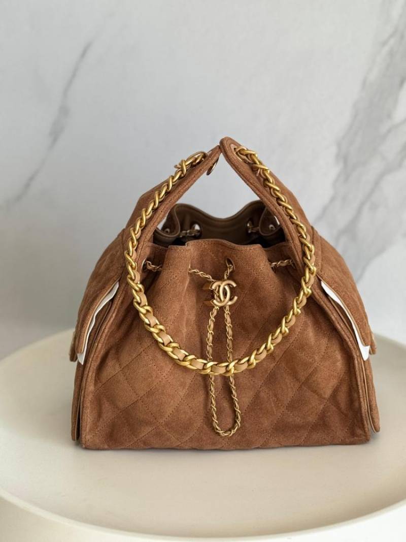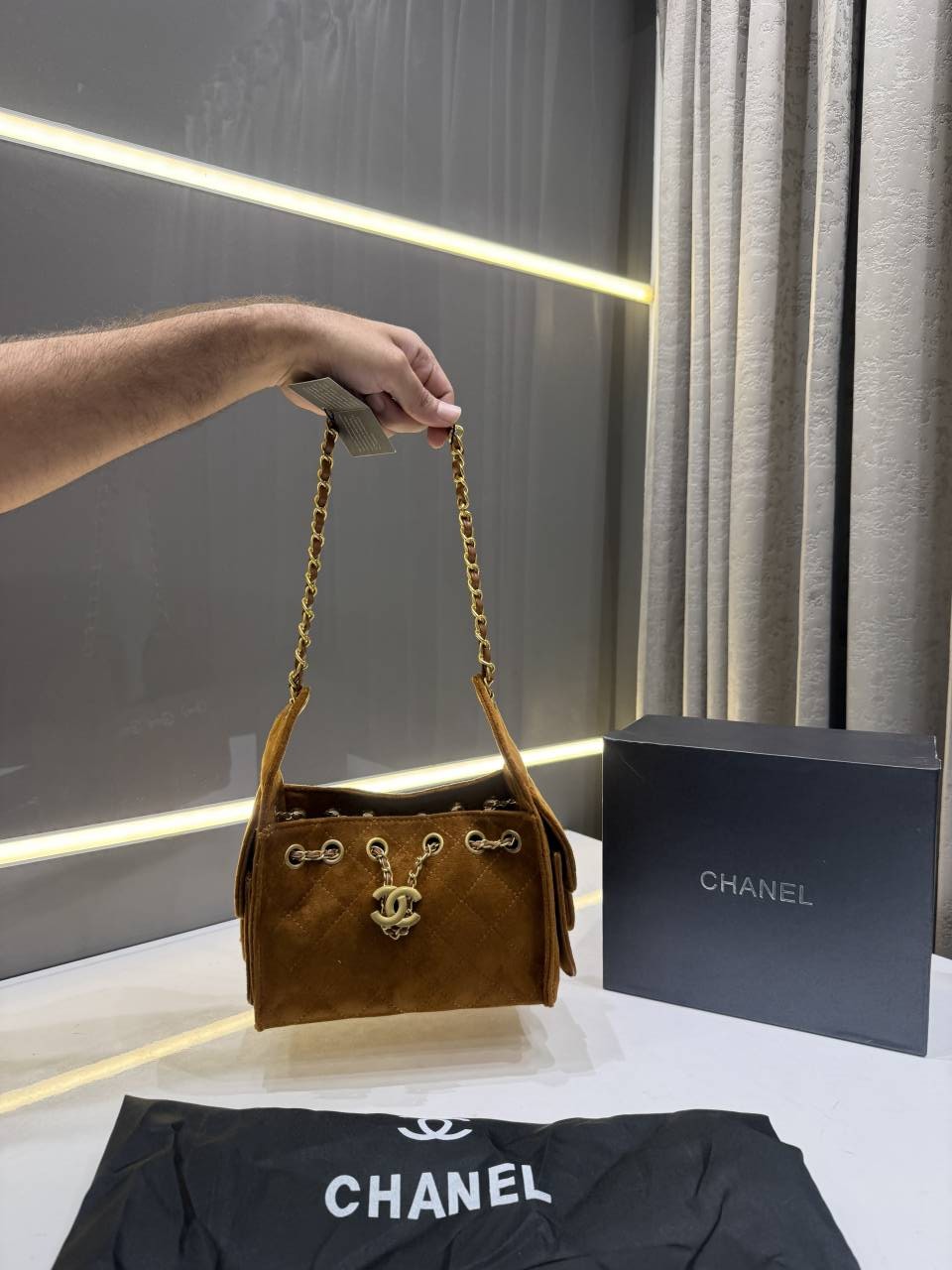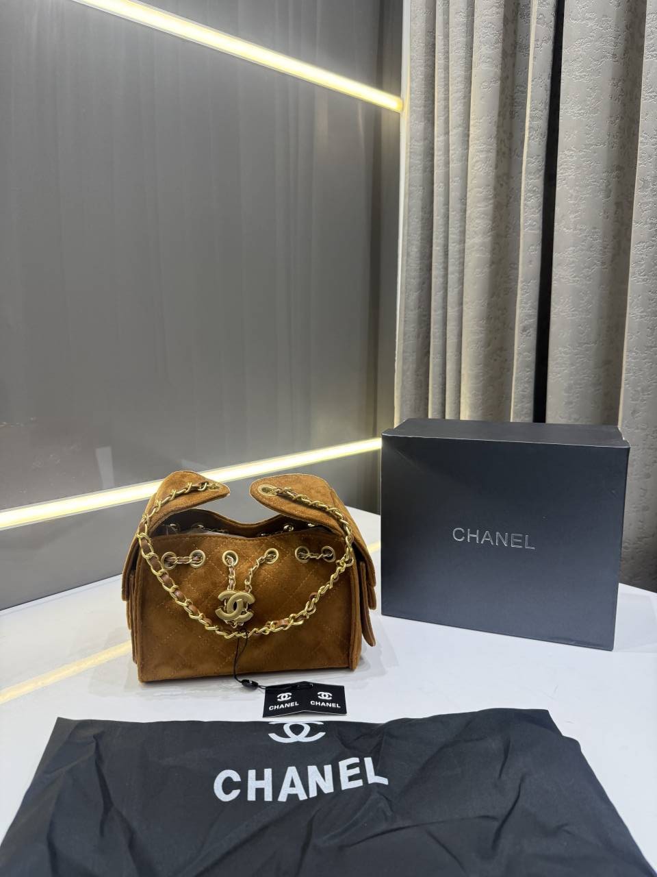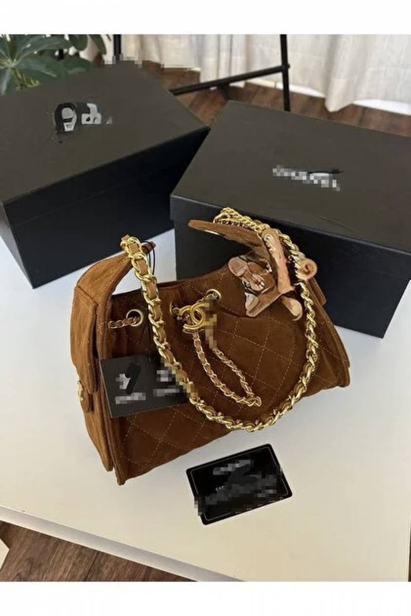 • CHANE.L HOBO BROWN SUEDE PREMIUM HAND BAG WITH OG BOX PACKING