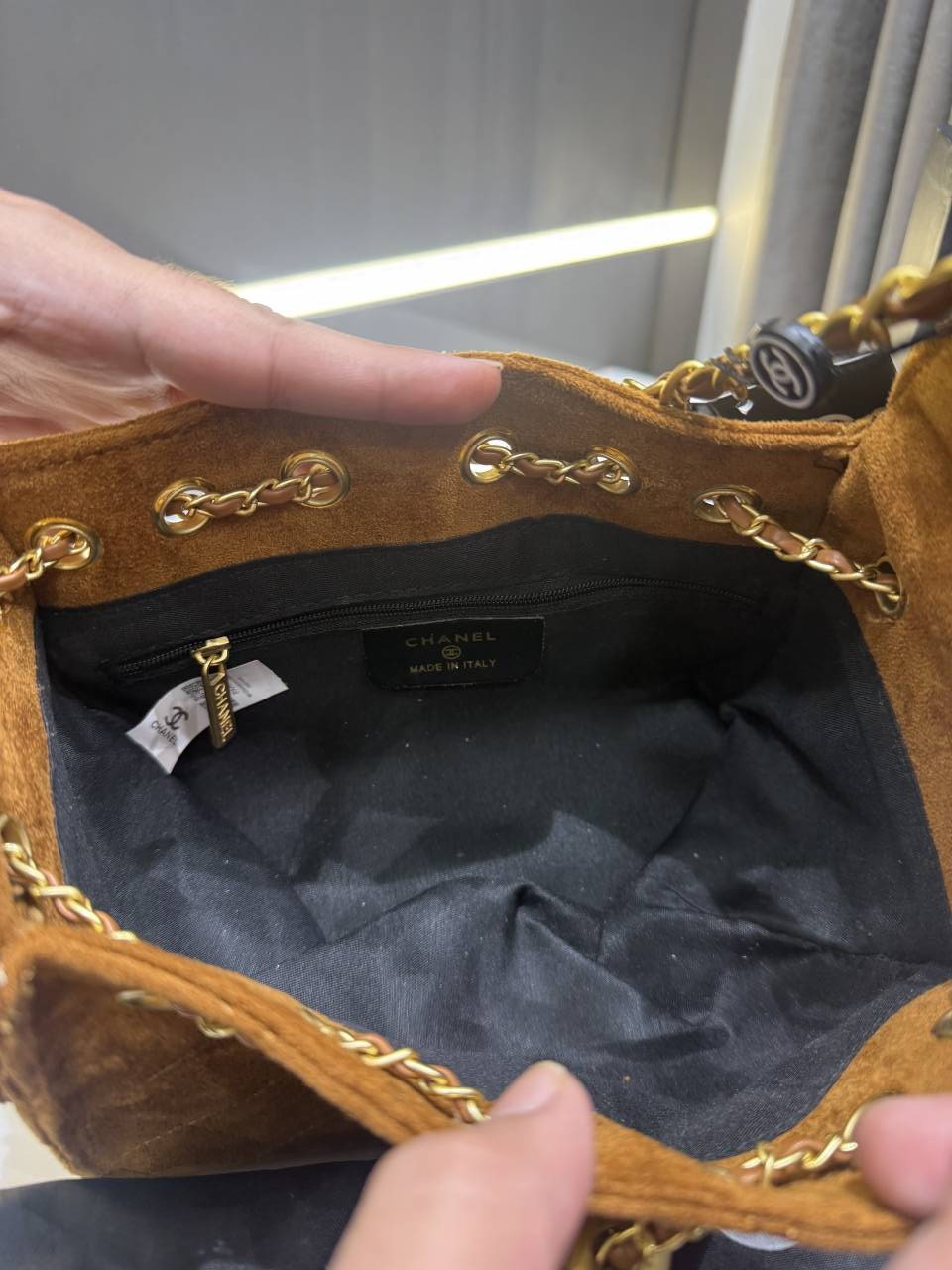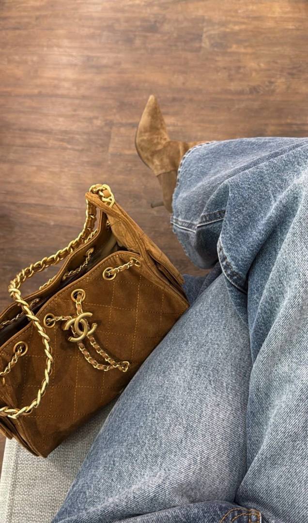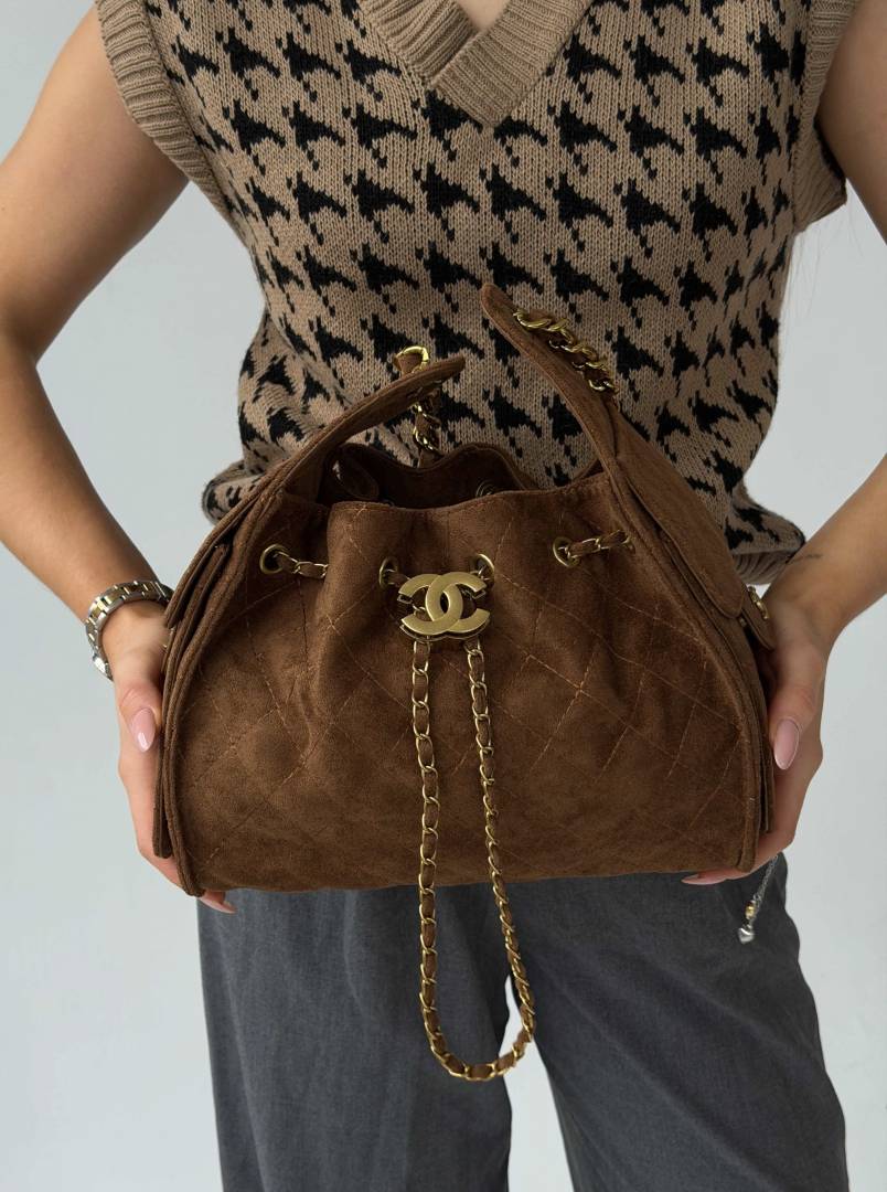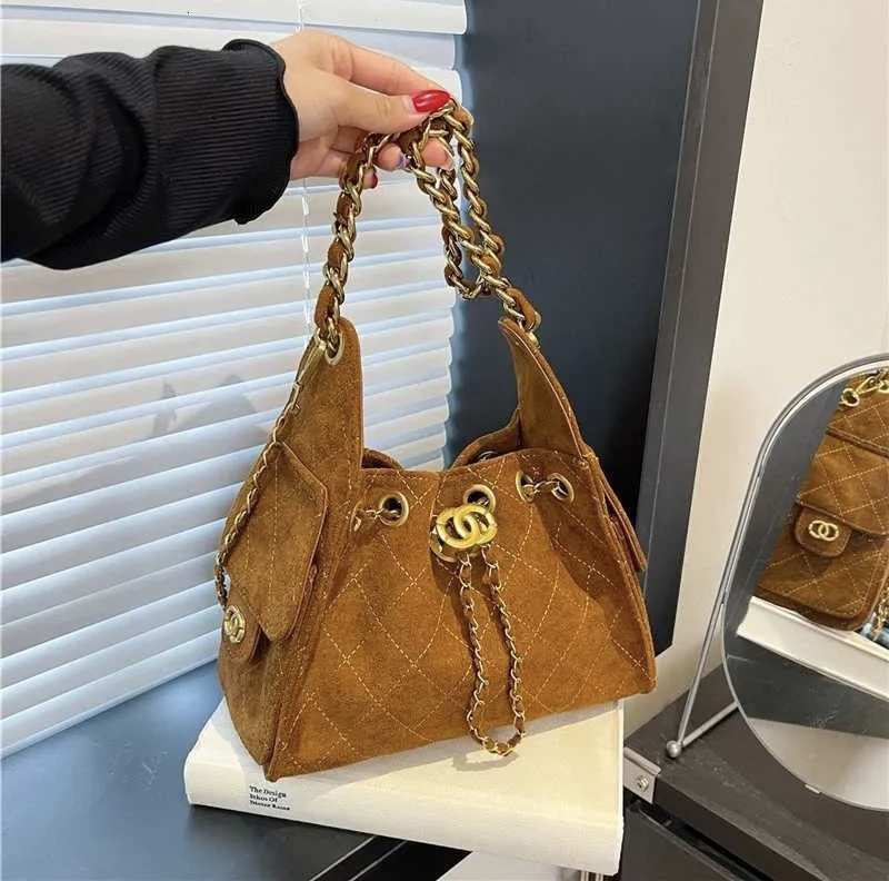 • CHANE.L HOBO BROWN SUEDE PREMIUM HAND BAG WITH OG BOX PACKING
