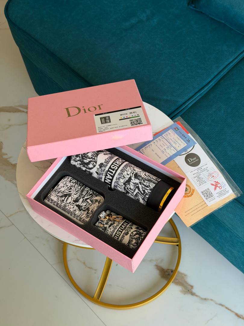 CHRISTIAN DIO.R GIFT SET TUMBLER POUCH & MINI WALLET WITH OG BOX