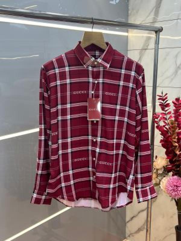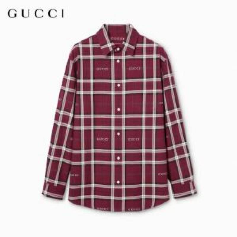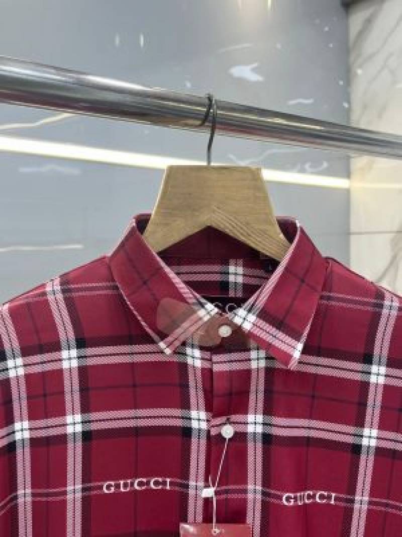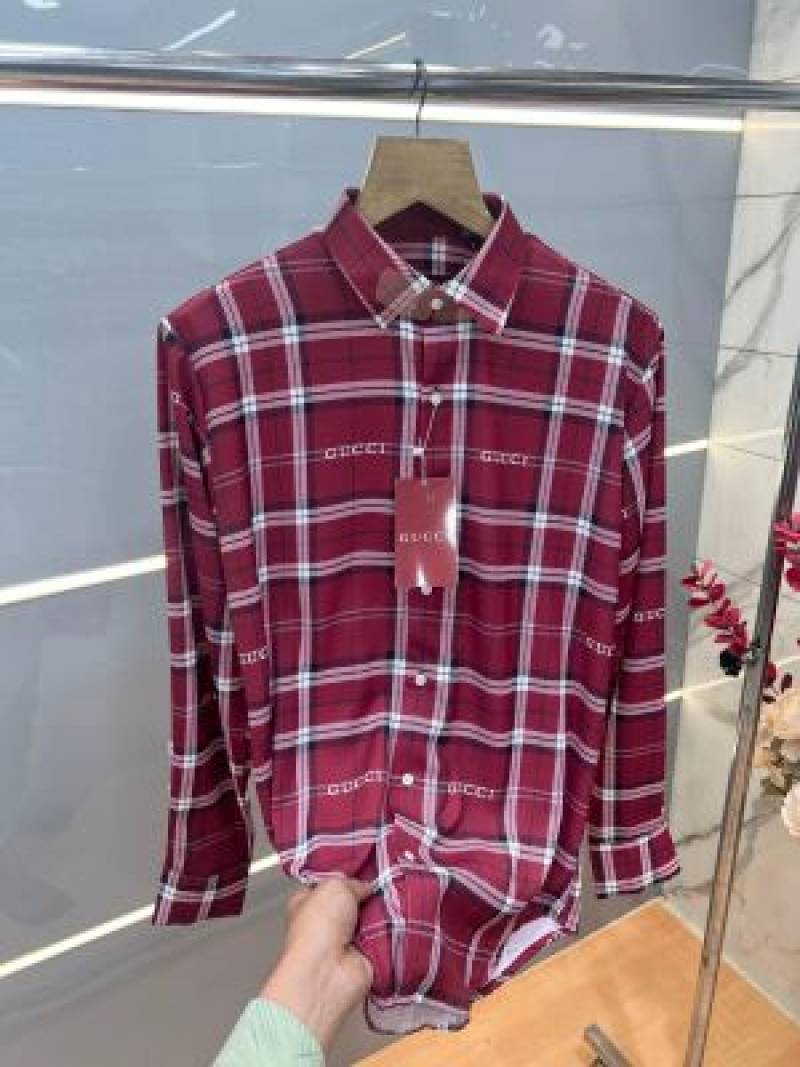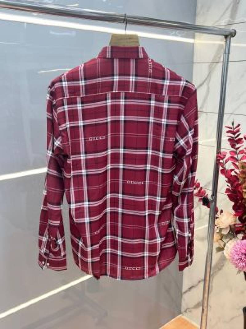 Gucc i Maroon Premium Checks Allover Logo Shirt With custom Branded Button Tagging And Brand Packing 3813