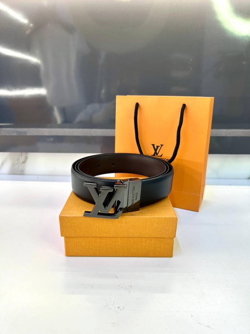 • Loui_s Vuitton Glossy Black Reversible Belt Fa 202