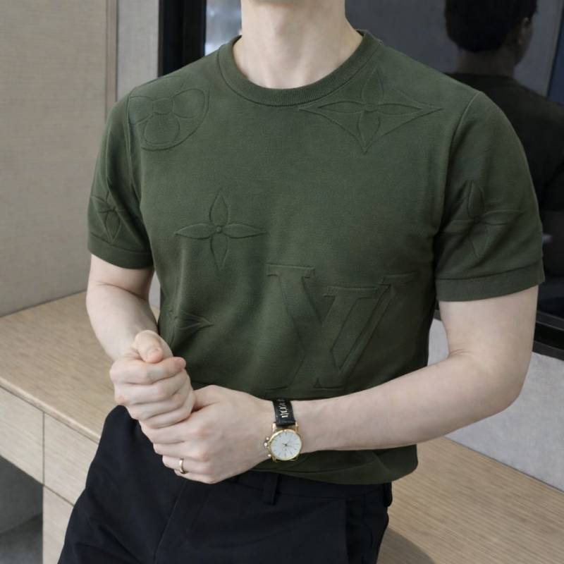Loui s Vuitton Imported Green knitted Super Premium Round Neck T-shirt F3530-GR
